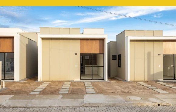 Casas com 2 quartos e design moderno em um condomínio com infraestrutura de lazer e segurança para uma vida de qualidade e bem-estar.